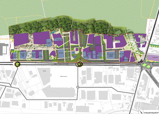 La démarche a intégré le paysage forestier au nord en déployant des trames végétales au cœur du quartier, renforçant les connexions entre ville et nature. Trois scénarios ont été explorés avant de converger vers un projet final, conciliant accessibilité, gestion des flux, espaces publics/privés, et stationnement.